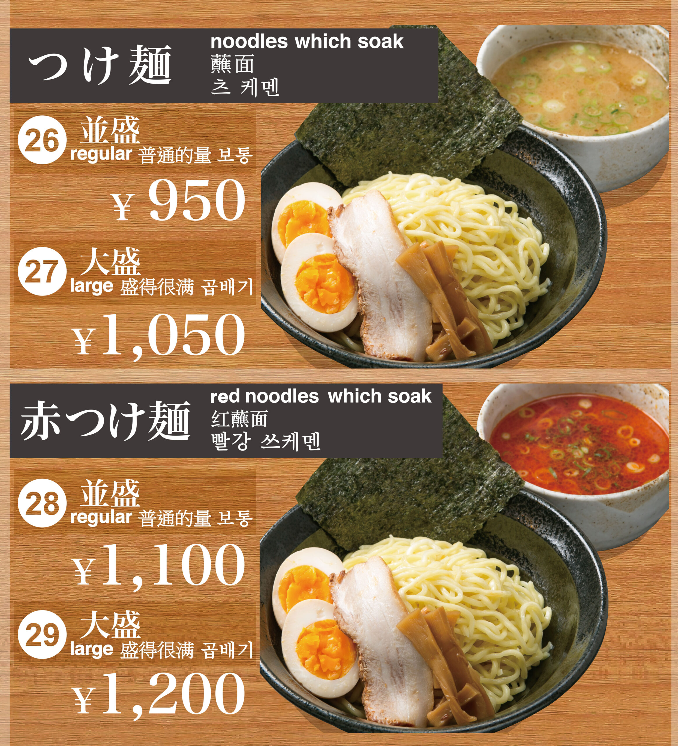 つけ麺のために間初された専用の「中太の麺」は、特製のタレと絡みやすく、食べごたえのある麺に仕上げています。つけダレと絶妙なバランスで絡みます。